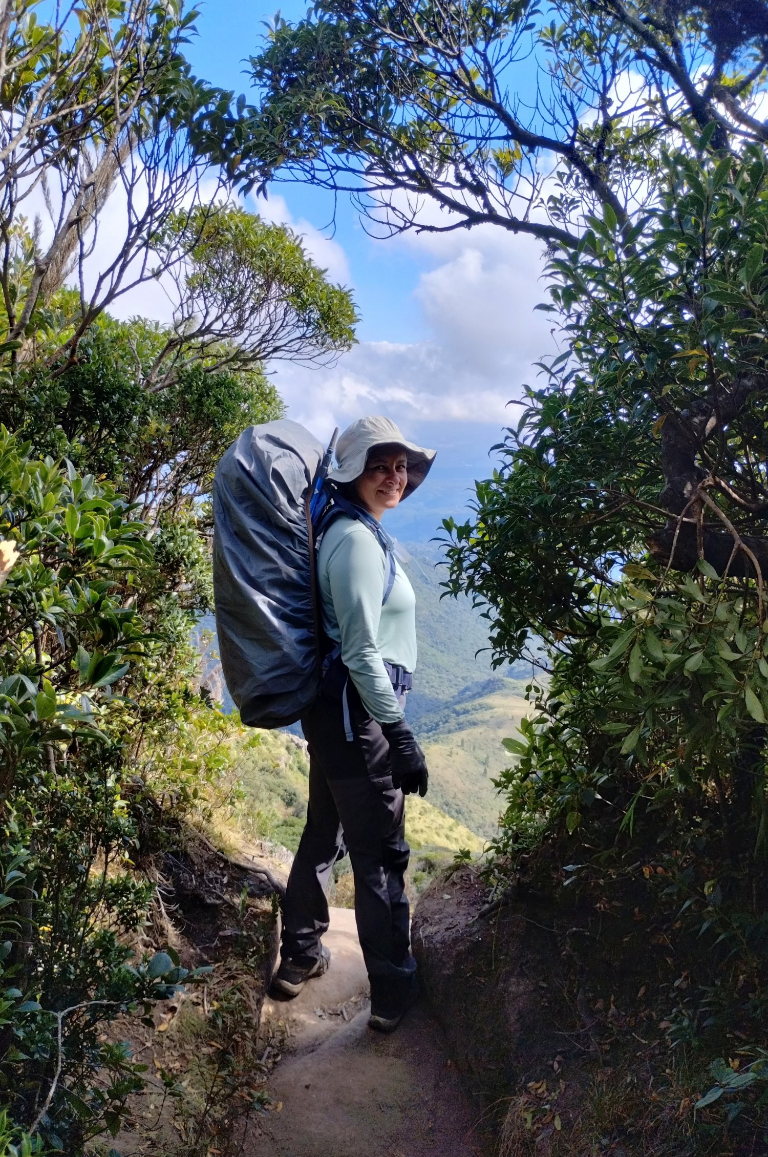 Aproveito para abrir um parêntese e comentar um ponto que chamou muito nossa atenção: a quantidade enorme de lixo, fezes, papel higiênico e lenços umedecidos pela trilha e, principalmente, nos cumes. Realmente assustador! No pico Paraná encontramos até folhas do livro de cume utilizadas para limpar a bunda, além de muito lixo acumulado e verdadeiras latrinas a céu aberto. Uma cena triste que contrasta com a beleza do local. Lembrando que lenços umedecidos são feitos com materiais sintéticos como o poliéster, que não é biodegradável e se acumula na natureza.
