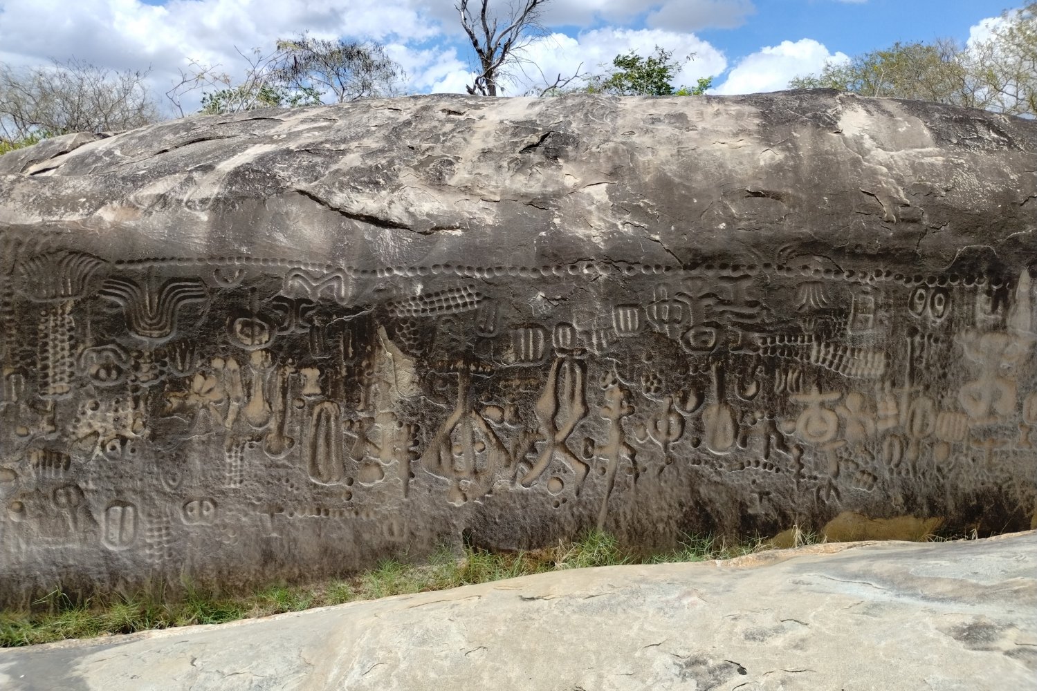 Não se sabe como, por quem ou com que motivações foram feitas as inscrições nas rochas que compõem o sítio arqueológico. Têm sido apontadas diversas teorias, que vão desde origens fenícias até alienígenas. Uma datação em carbono 14, que poderia dar uma ideia da idade das inscrições, é inviável, pois as gravuras foram esculpidas sobre lajes de gnaisse, na várzea do rio Bacamarte, que, no período de maior precipitação, cobre de água todo o conjunto rupestre, sem deixar qualquer vestígio traçável. Mas sem dúvida, um local curioso e belíssimo, diferente de tudo que já vimos até o momento.