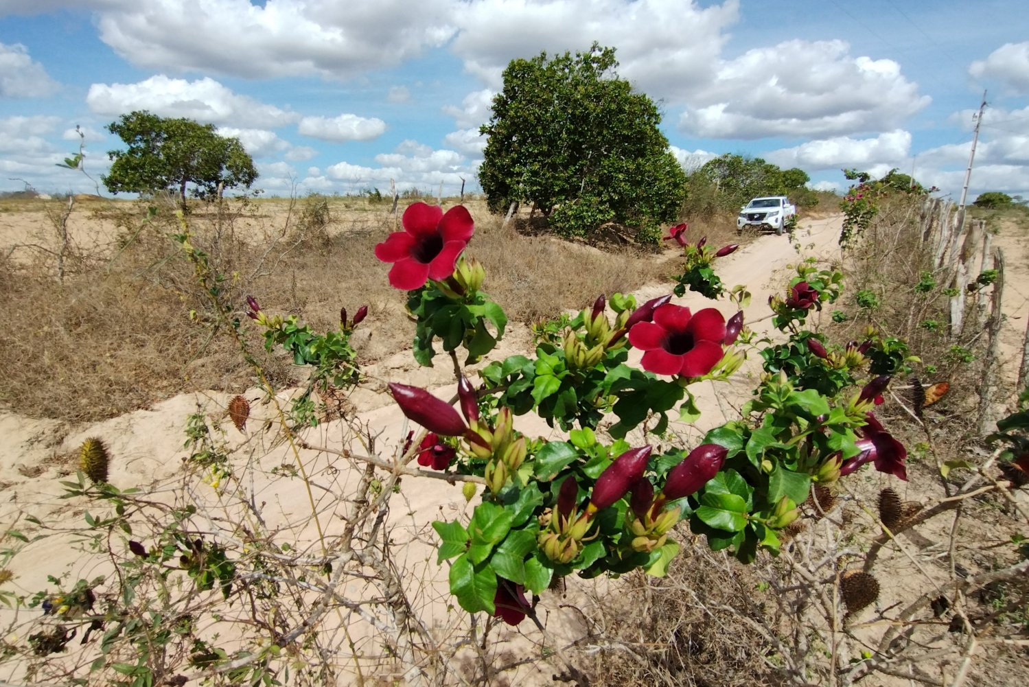 Estradinhas de terra que cortam a caatinga, algumas delas transitáveis apenas com veículo 4x4.