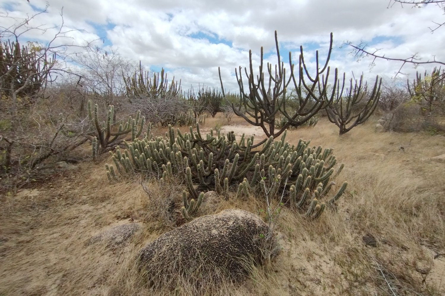 Paisagem típica da caatinga com o cacto xique-xique (Xiquexique gounellei) em destaque.