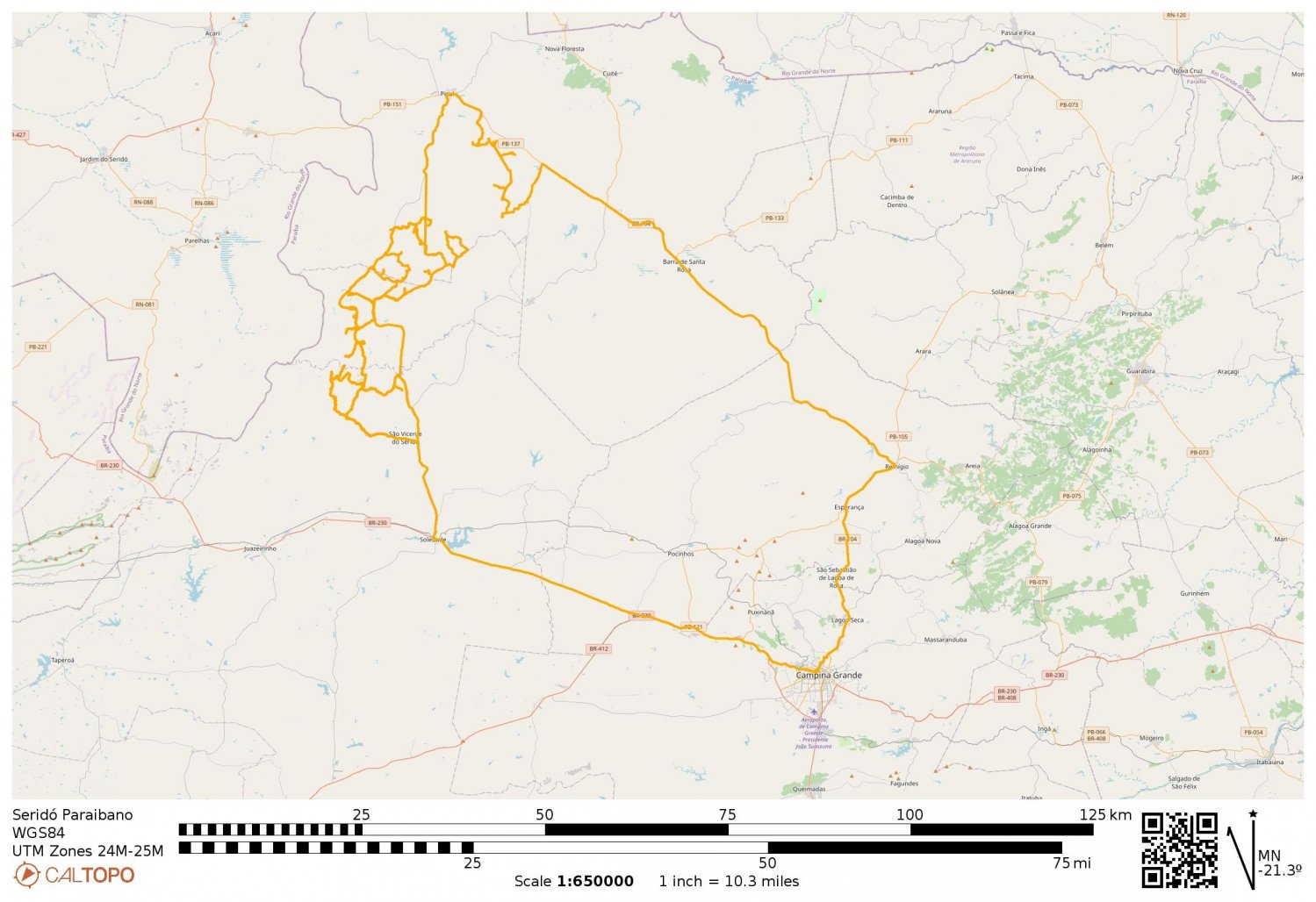 Região percorrida no Seridó paraibano, a partir de Campina Grande - PB.