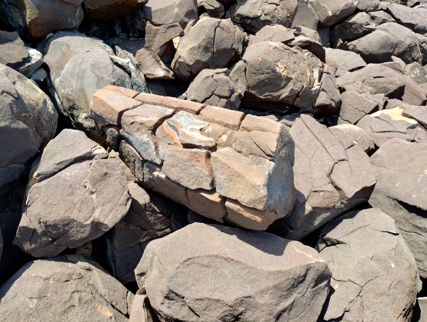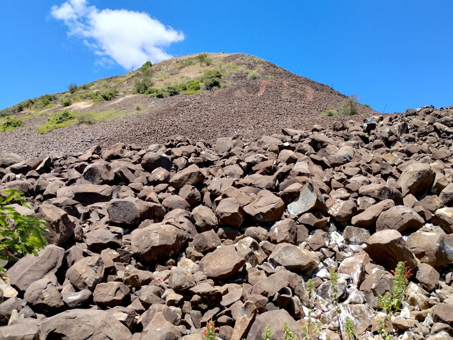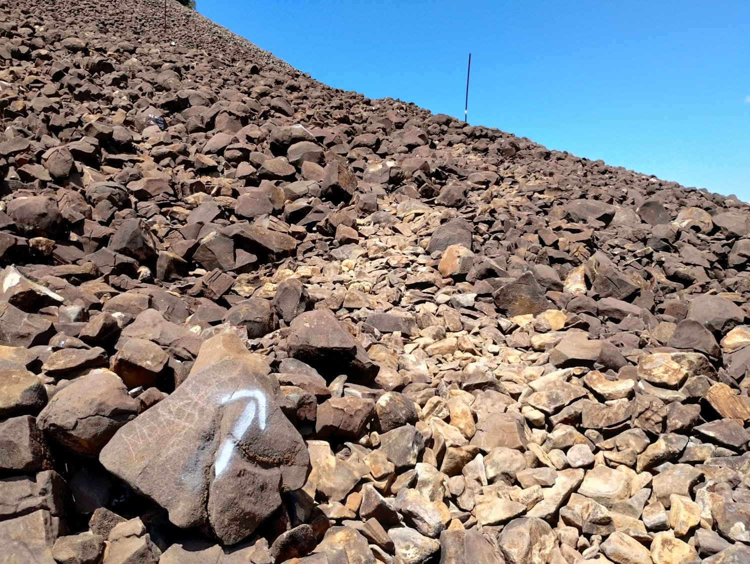 Aos poucos vão surgindo os primeiros blocos de rocha basáltica.