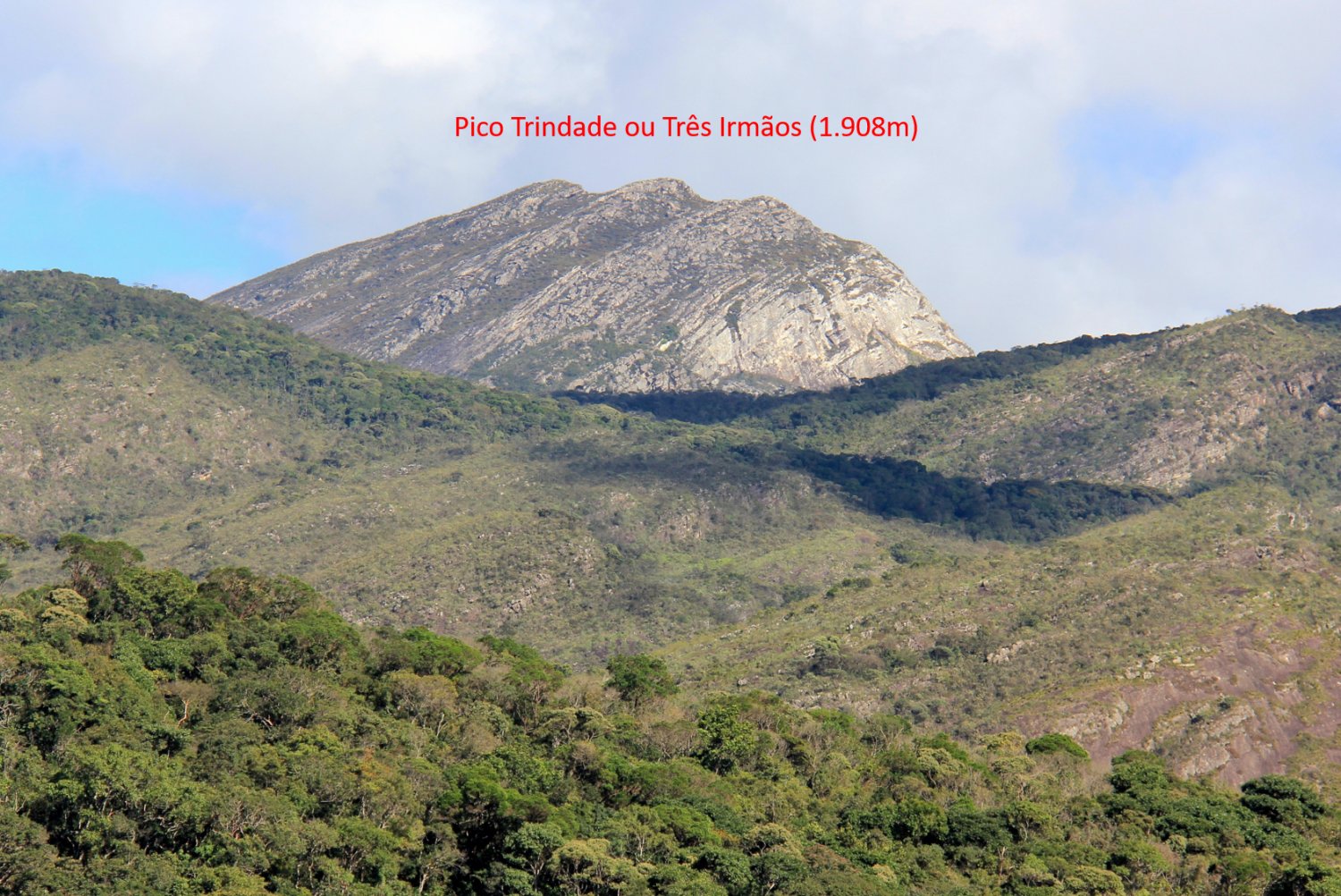 Atual Pico Trindade ou Três Irmãos (1.908m), evidenciando os três cumes que o caracterizam.