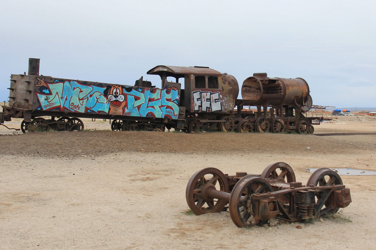 O contraste dos trens sucateados e enfileirados no meio do deserto, com as montanhas do entorno e o céu azul, cria um cenário belo e ao mesmo tempo desolador, especialmente no final da tarde, quando quase não há pessoas no local.