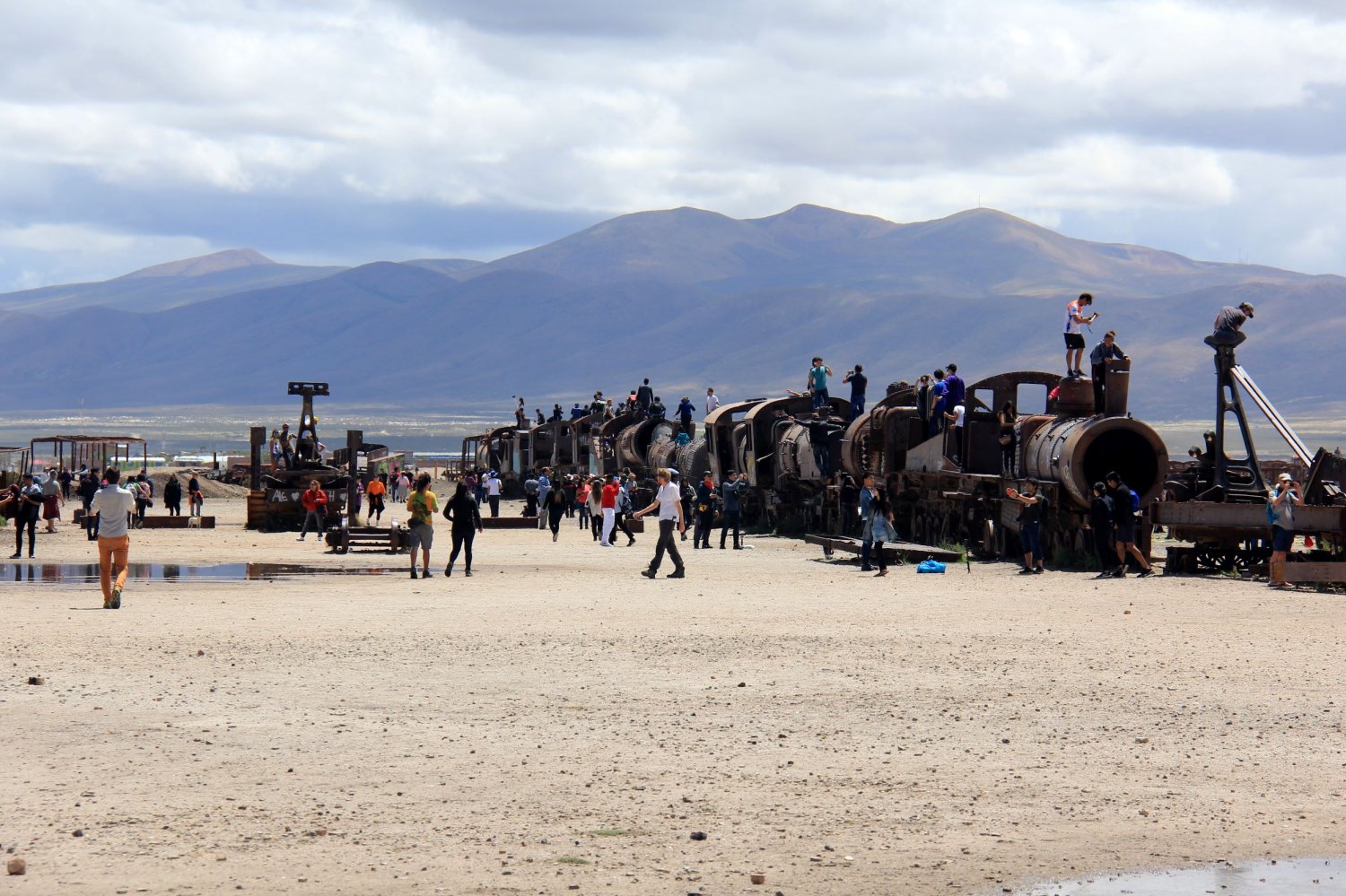 Na manhã do dia seguinte a quantidade de turistas que visitam o Cemitério de Trens antes da partida para o Salar é grande e o local perde um pouco da magia.