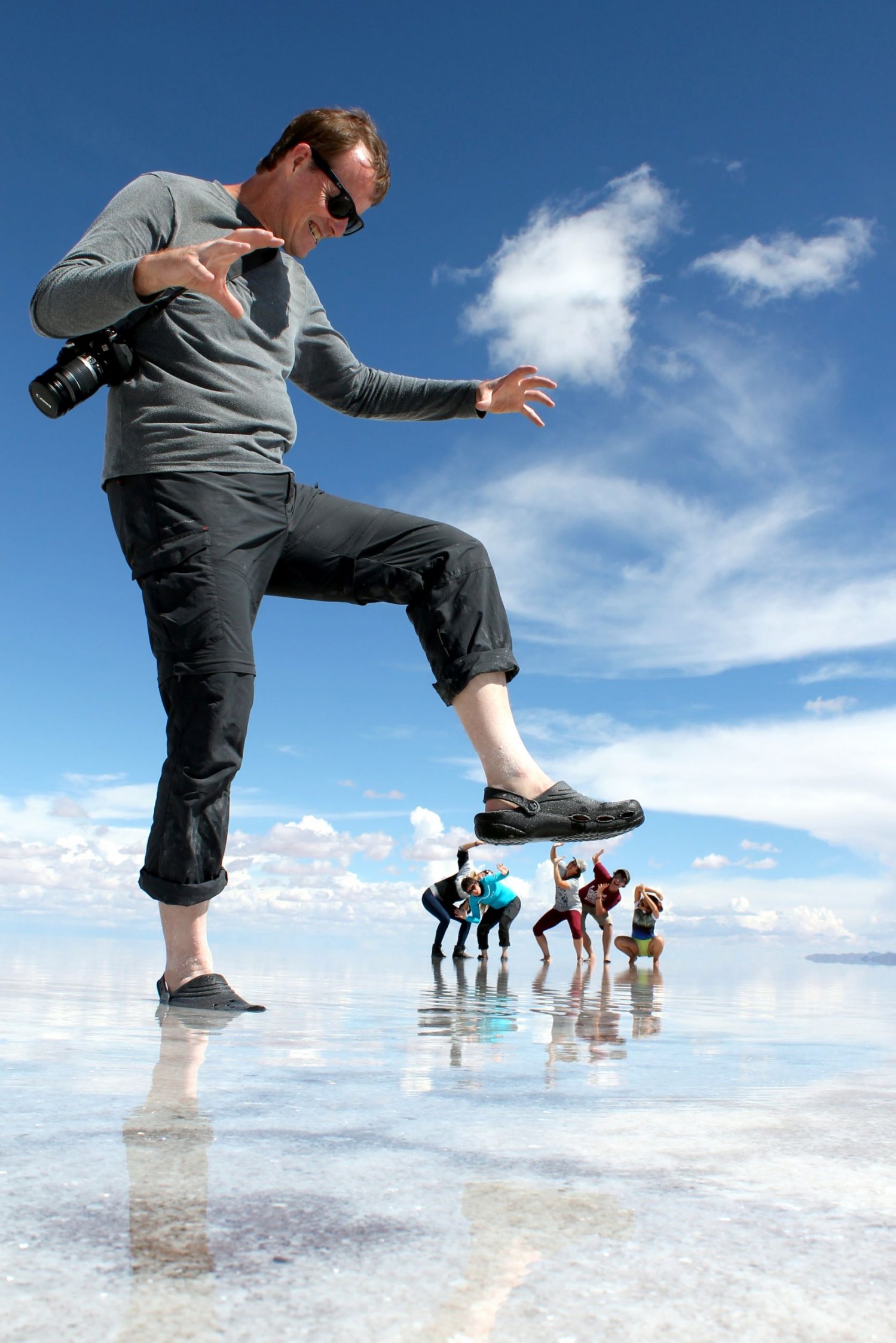 Depois do almoço, felizmente nos deslocamos com o veículo para um ponto isolado do Salar, onde pudemos aproveitar a tarde toda para caminhar e fotografar o impressionante horizonte espelhado que a cada momento se modificava, na medida em que as grandes nuvens cumulus passavam.