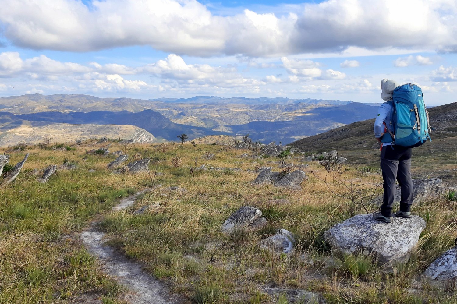 Vista do interior do PARNA da Serra do Cipó a partir do cume do pico do Ernesto. Momento para contemplação e reflexão. Já pensou em fazer um curso básico de montanhismo? Procure um clube de montanhismo na sua região e se informe. Ele pode trazer um novo rumo para sua vida!