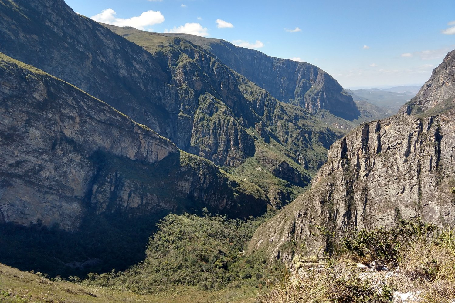 Foto das escarpas do vale do rio do Peixe, tirada a partir do mirante do Travessão. Um dos cartões postais da travessia.