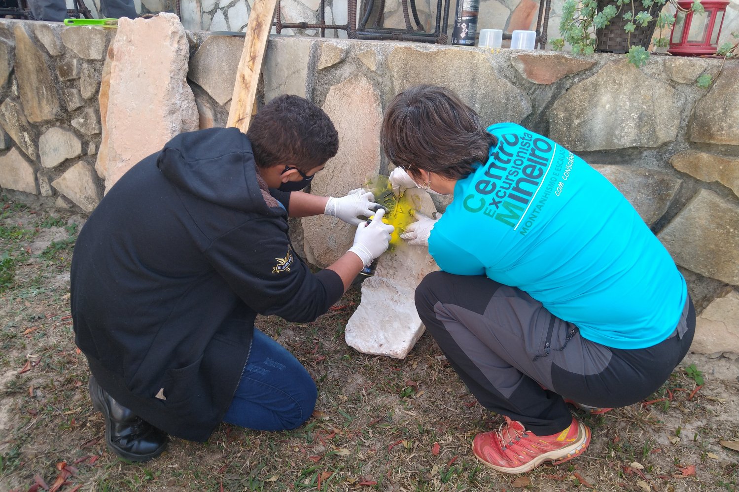 Atividade prática durante o Seminário e Oficina de Sinalização da Transespinhaço, realizado no distrito de Milho Verde.