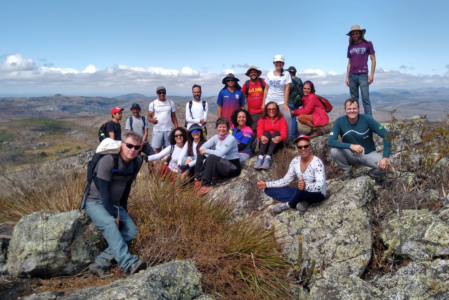 Participantes da caminhada, no cume do pico do Raio (1.409m).