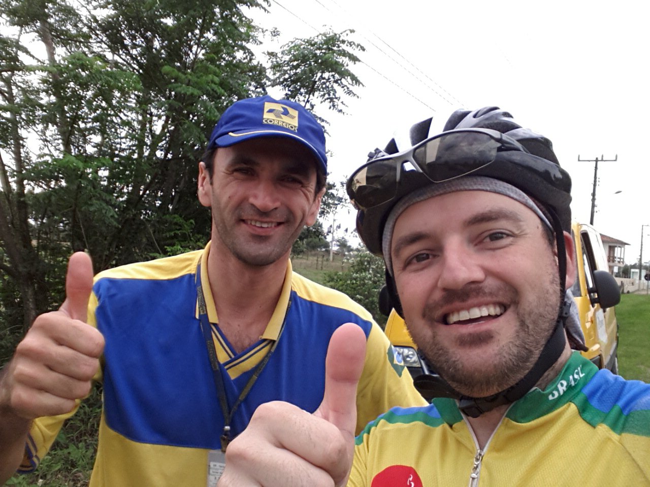 Chegando na saída para a cidade de Praia Grande que dá acesso à região do cânions e a cidade de Cambará do Sul (RS) no alto da serra, pedi informações sobre as condições da estrada em um posto de gasolina, o que confirmou o que todos vinham falando, por causa das chuvas a subida da serra estava intransitável, infelizmente tive que desistir de um ponto importante muito desejado meu roteiro, lembro que a desistência me desanimou naquele dia tive que me conformar e pensar que poderia conhecer a região em outra oportunidade, decidi ir até Passo Torres, última cidade de Santa Catarina que eu passaria em minha viagem, chegando lá comecei a procurar um lugar para passar a noite, me informaram onde tinha um camping, fui lá estava fechado, peguei informações de pousadas, a primeira fechada, a segunda também a terceira a terceira também, eu estava desistindo de Passo Torres e quase atravessando a ponte que liga a cidade de Torres já no Rio Grande do Sul para tentar a sorte por lá, foi quando um carro com rack de bicicleta no teto e cheio de adesivos de eventos de ciclismo me abordou, o motorista que saiu do carro usando uma camisa de ciclismo me perguntou se eu estava procurando lugar para ficar, eu disse que sim mas estava tudo fechado, ele disse "Então meu amigo você acabou de achar!"