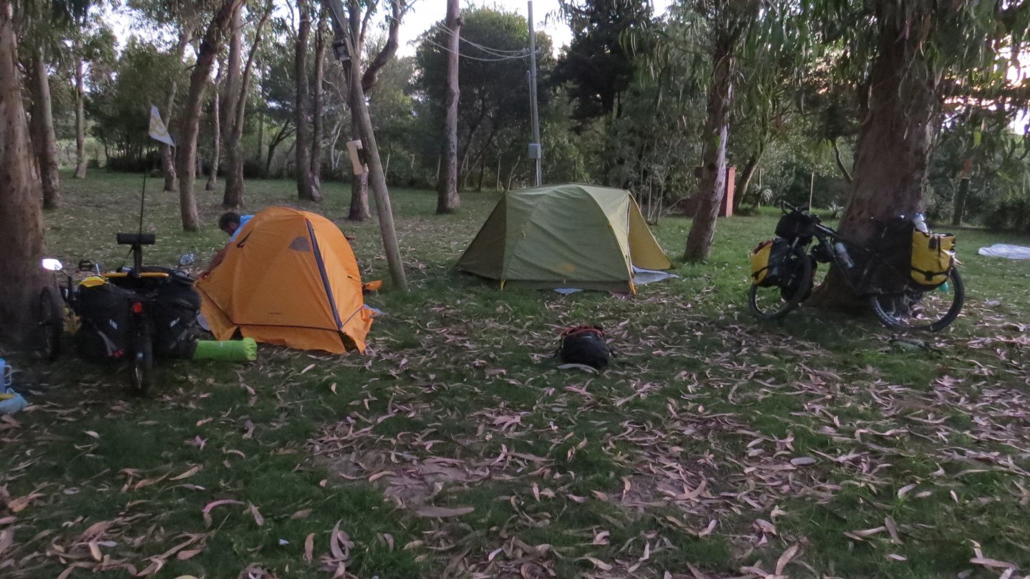Chegando em Las Flores, o pneu traseiro do Wagner furou e logo vimos a placa de um camping, chegando lá o Leandro e o Wagner explicaram seu projeto e ofereceram a troca da publicidade em seu site por uma pernoite, já que não poderíamos seguir viagem devido ao problema com o pneu, o dono do camping disse que não era necessário fazer publicidade de seu camping, pois recebia apenas excursões de escolas, mas nós poderíamos ficar uma noite sem custo, felizes com a notícia tratamos de montar acampamento e o Wagner foi remendar a câmara, mais tarde escutamos um som de piano vindo da casa do proprietário do camping.