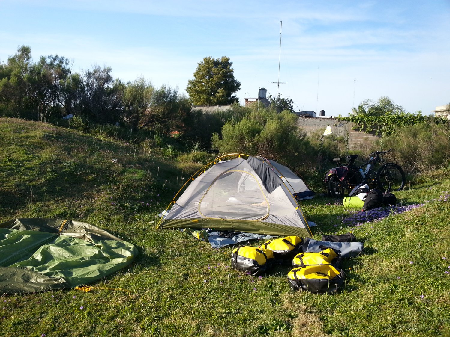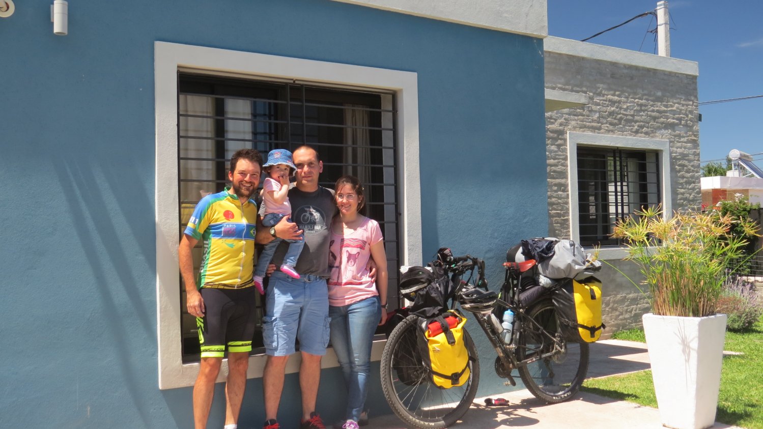 Na minha próxima parada, em Dolores, eu consegui um contato pelo coushsurfing quando fiz meu planejamento antes de sair de Colonia del Sacramento, cheguei na cidade relativamente cedo naquele dia, lembro apenas de ter saído um pouco tarde de Carmelo, parei para almoçar no meio do caminho, quando cozinhei um arroz acompanhado das ervilhas frescas em um ponto de ônibus e cheguei ao meu destino com luz do dia ainda. Achar a casa da família que me recebeu foi fácil, a cidade é pequena e com ruas paralelas, ao chegar na casa fui recebido por Pablo e Mariana e também por sua filhinha Paula, Pablo estava curioso quanto a minha viagem, aproveitamos para tomar um mate enquanto eu explicava para ele todo o trajeto que tinha feito e pretendia fazer, a bicicleta e a minha motivação para realizar essa viagem, ele me explicou que estava no coushsurfing porque gostava do espirito de viajante e que receber viajantes em sua casa era uma forma de conhecer diferentes culturas. No dia seguinte enquanto eu arrumava minhas coisas para seguir viagem, Pablo e Mariana receberam um casal de amigos e sua pequena filha igualmente curiosos com a minha bicicleta totalmente carregada, depois de conversarmos um pouco, Pablo me deu algumas dicas de onde poderia passar a noite e também uma dica muito importante em relação onde trocar dinheiro ao entrar na Argentina pela ponte de Fray Bentos a Gualeguaychú.