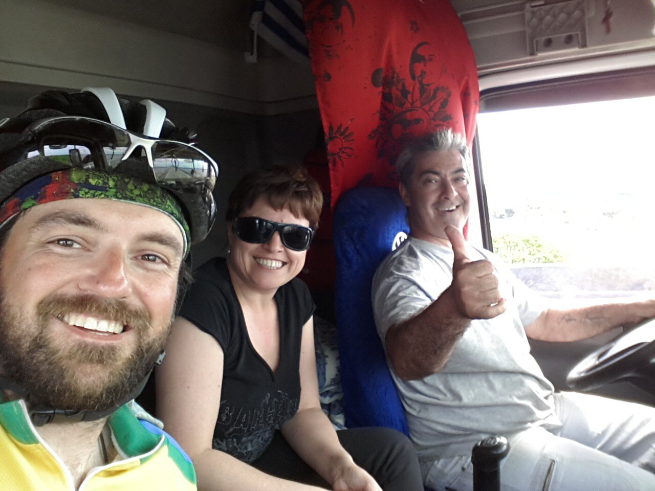 Mais alguns quilômetros pedalados e eu cheguei na aduana, antes de carimbar o passaporte encontrei o senhor que realiza o câmbio no local, dica do Pablo de Dolores, esse senhor seria confiável para trocar dinheiro na divisa entre os dois países, dinheiro trocado fui tratar de carimbar o passaporte, esse posto de fronteira funciona como um pedágio, os carros param ao lado de uma guarita onde se entrega os documentos para realizar o tramite da fronteira, após esperar alguns minutos na fila atrás de um carro, entreguei meu passaporte e após ter o carimbo de entrada na Argentina fui informado que não poderia atravessar ponte pedalando, demorou um ou dois minutos pra cair a ficha de que eu estava preso no posto de fronteira, para minha sorte ali é a rota dos caminhões que transportam carga entre Uruguai e Argentina, fui conversar com um caminhoneiro que estava se preparando para seguir viagem, expliquei eu estava viajando de bicicleta e não podia passar pela ponte e pedi uma carona somente até o outro lado, ele disse que tudo bem, colocamos a bicicleta deitada entre a cabine e a carreta, subi no caminhão e atravessamos o Rio Uruguay, cerca de dois ou três quilômetros à frente eu desci do caminhão em território argentino, mas a história continua no próximo post.