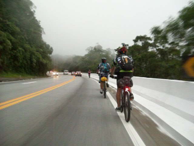 E a terceira vez, levamos um pessoal a mais, com a participação de Luis, Rafael e Dani (noiva do Rafael), Cibele, Xikaum, Lucrecio e mais dois amigos deles que não lembro o nome agora, tivemos alguns contratempos no caminho que acabou atrasando bastante o pedal, e por isso terminamos a descida da serra a noite, chegando em Bertioga, parte do pessoal pegou o ônibus para voltar, eu e a outra metade do pessoal, seguimos para um camping onde passamos a noite e voltamos no dia seguinte.