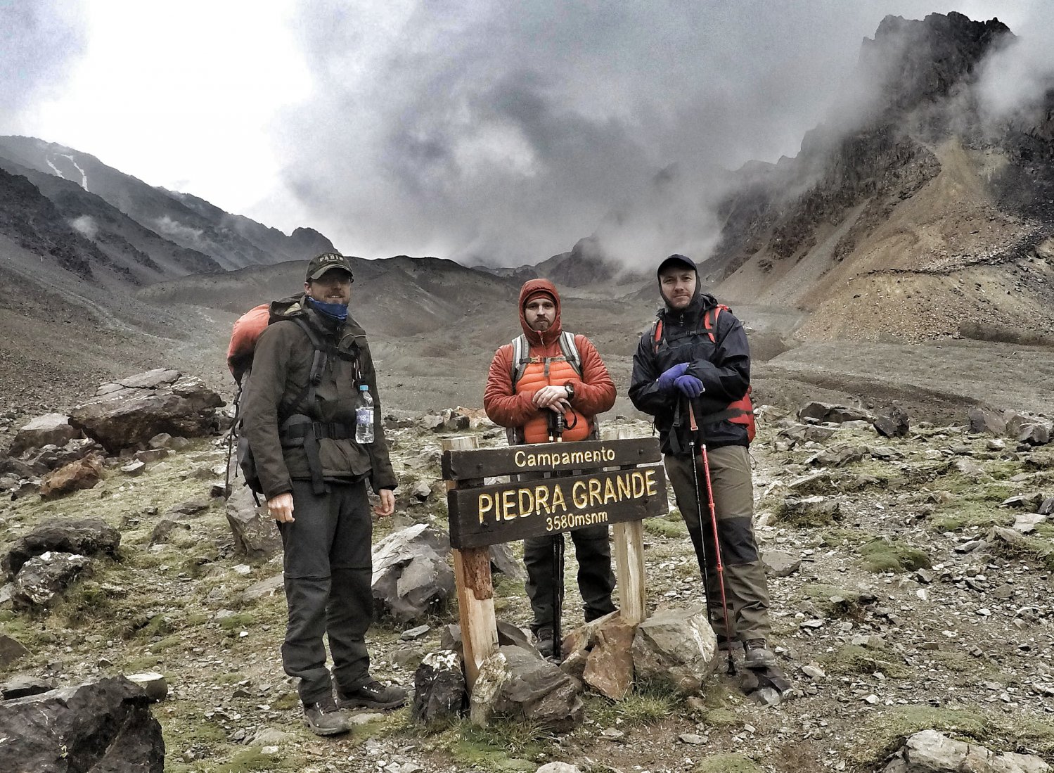 Neste dia da expedição, o dia 07, tornou-se especial, pois não retornaríamos mais para o refúgio, partimos do refúgio em direção ao Acampamento Piedra Grande e lá ficaríamos para pernoitar. No acampamento Piedra Grande, tem-se acesso a água proveniente das geleiras, a mesma fica uns 200 metros distante do acampamento. Nossas refeições neste dia e nos dias que viriam montanha acima, se resumiu a utilizar água fervida e tratada, e comida liofilizada na marcar Lionutri. Na noite deste dia, sofremos muito com o vento, acordávamos constantemente com uma terra fina sobre nossos sacos de dormir. Neste acampamento começamos a sentir novamente os sintomas da altitude, cada movimento do corpo deve ser cuidadoso afim de evitar tonturas, e a cada sequência de passos na caminhada, teve-se o cuidado e necessidade de parar e respirar.