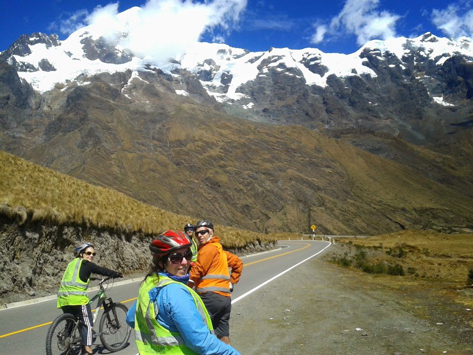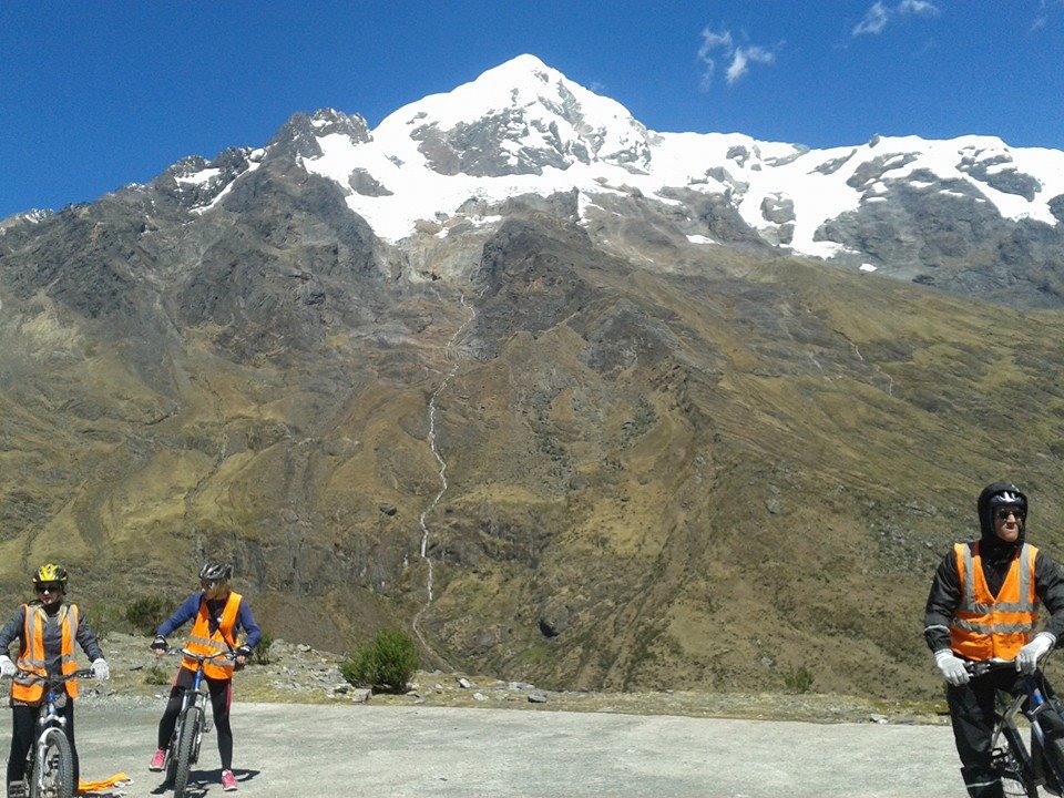 Numa altitude de acima de 3.400 m iniciamos a aventura com descida de bike pela estrada a partir da base do Nevado Veronica. Foi meu primeiro contato visual tão próximo de uma montanha de mais de 5.000 de altitude, fiquei emocionada.