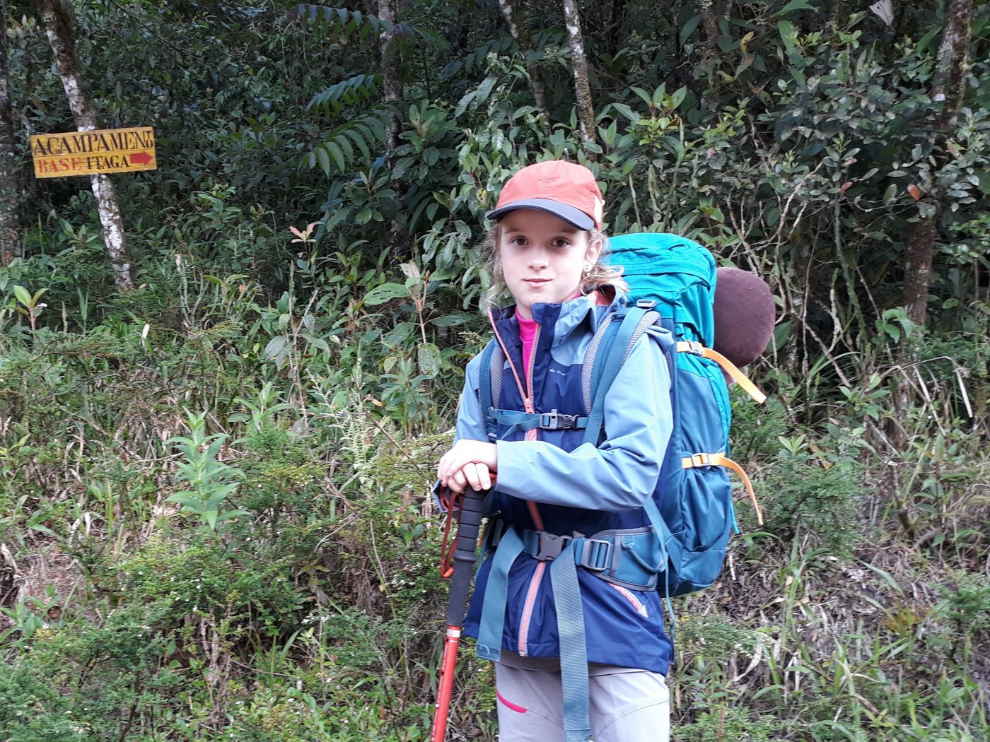 Oi pessoal, eu sou a Nicole, tenho 7 anos, fiz a Travessia Itaguaré-Marins em 3 dias, com meu Pai Antonio, mais dois amigos, o Altair, de Itapira-SP e Pedro de Marmelópolis-MG. Iniciamos no dia 11-12-2018 às 7:45 na base do Itaguaré. O tempo estava muito bom, mas havia a possibilidade de chuva à tarde.