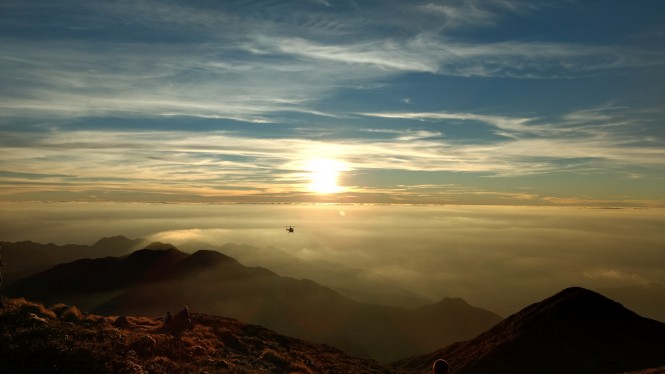 Caminhei a maravilhosa crista sozinha e fui acompanhando o nascer do sol por detrás das montanhas.