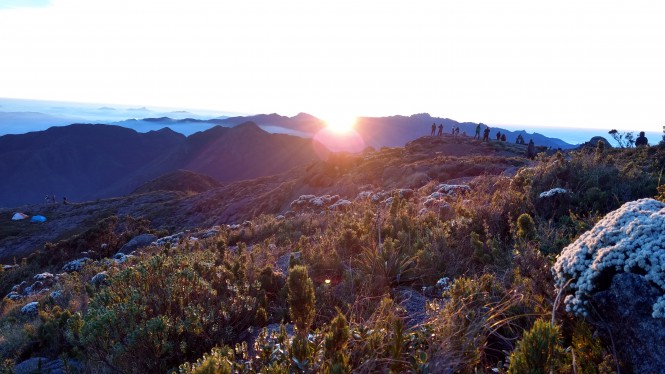 3° dia - Esplêndido amanhecer na Pedra da Mina e hora de seguir caminhada para o terceiro pico o 3 estados. Exatamente a divisa entre SP, RJ e MG.