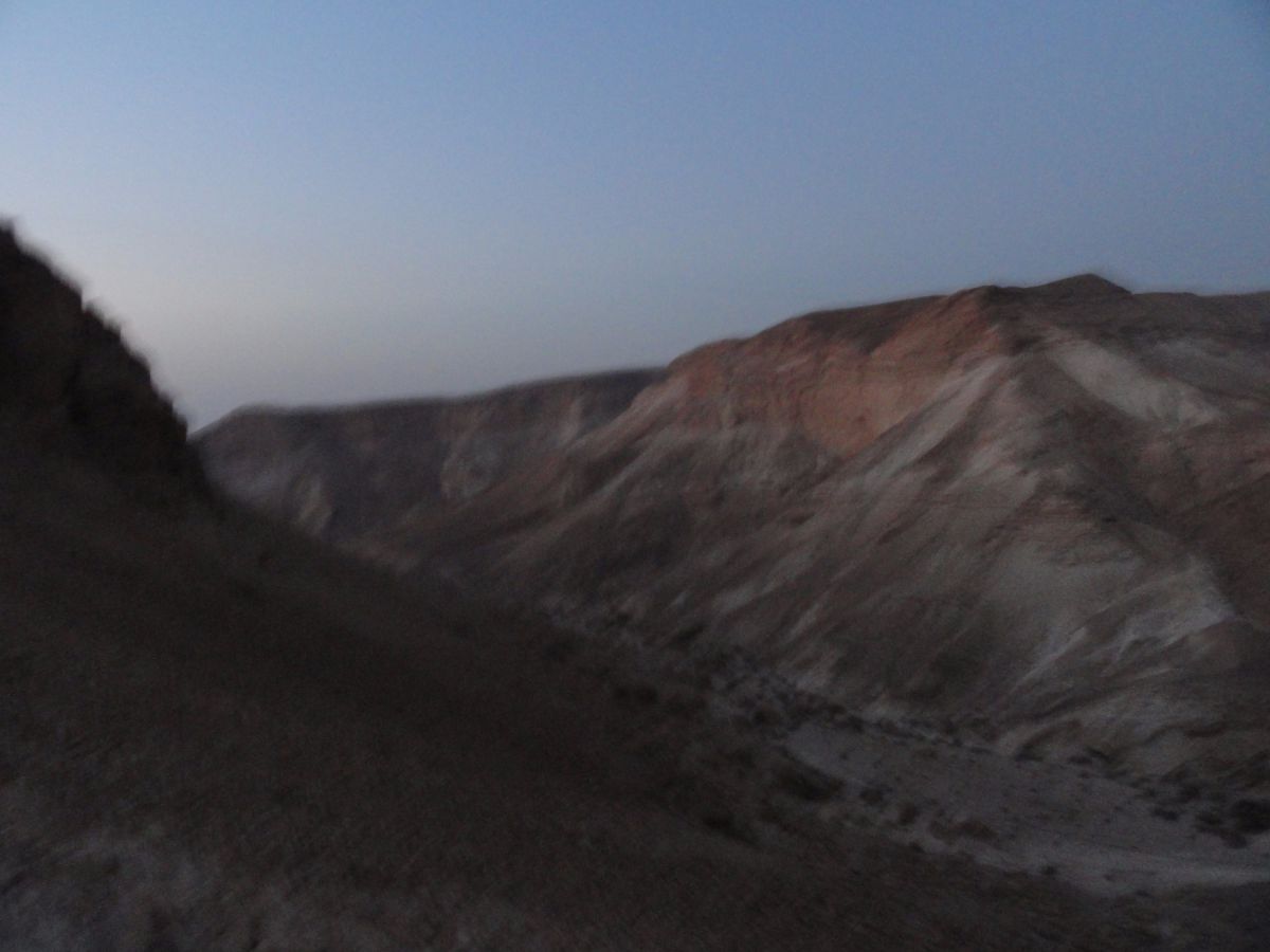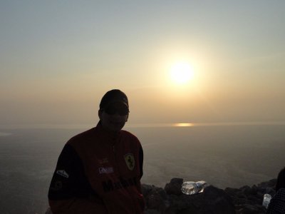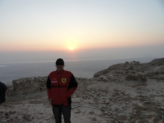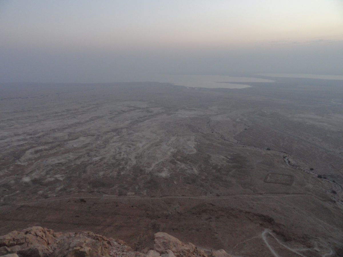 Subida ao monte Masada de madrugada para apreciar o nascer do sol lá de cima. Tem 400 metros de altura e tem vista para o Mar Morto.