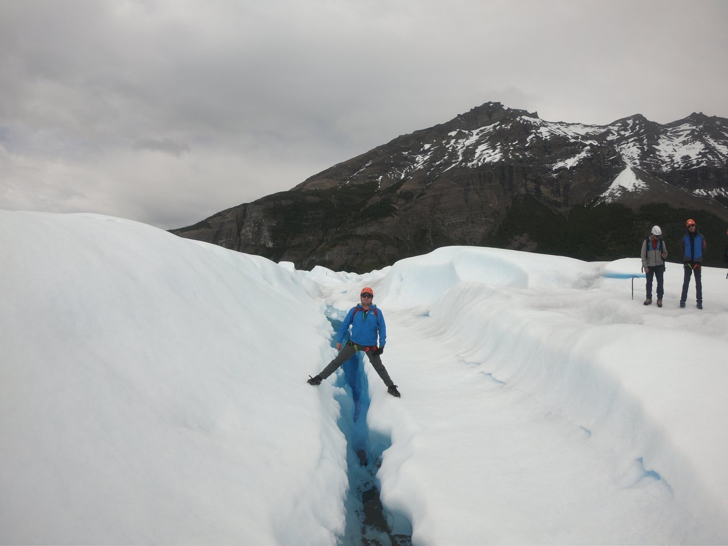 Fiquei de olho naquela torre se soltando do paredão, dava pra escutar os estalos do gelo, estava com a GoPro ligada o tempo todo e pronta para gravar caso houvesse um desmoronamento. Não fui premiado. Soube, através do grupo Hielo & Aventura, que caiu no dia seguinte.