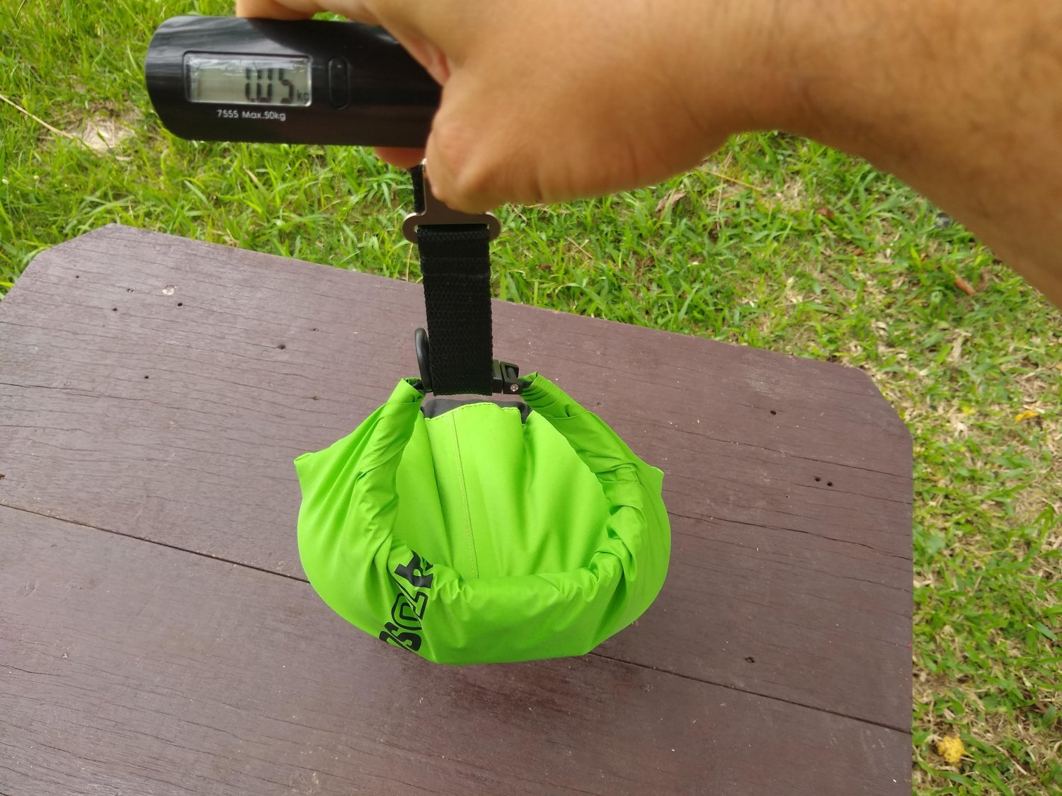 O peso total não passa de 1,1 kg e, dependendo da atividade, se a prioridade é ir ainda mais leve, adapto, não levando a chaleira e frigideira, por exemplo.