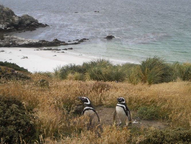 Praias desertas com pinguins e suas tocas, vegetação baixa, resquícios de guerra, frio, virar noticia na primeira capa do jornal local e muita vida marinha marcaram essa trip.