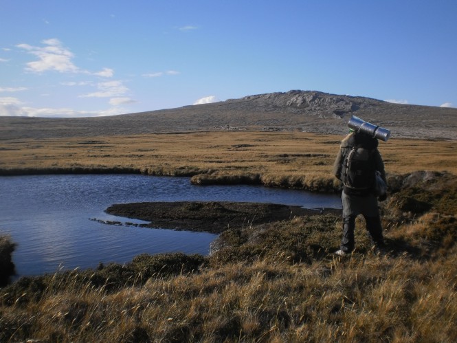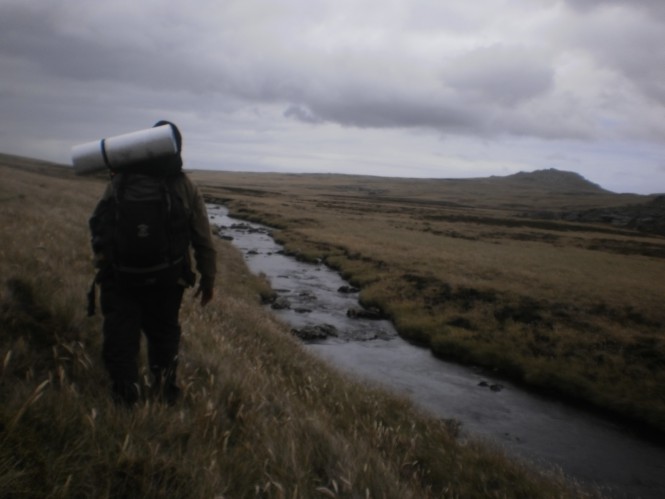 Trekking de 30 km ligando o interior da ilha, até sua pequena capital de 3000 pessoas, Stanley. Integrantes: 2