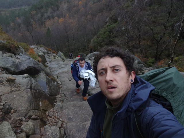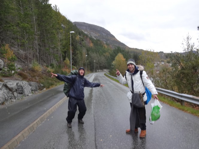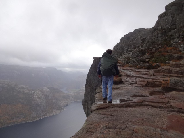 Um dia caminhando por Oslo e as 23 hs entramos em um trem rumo à cidade de Stavanger, em uma viagem que levou 7 horas. De Stavanger entramos em um barco que leva até um vilarejo chamado Tau e então tomamos um ônibus circular que nos levou até o municipio de Jorpeland onde iniciamos a caminhada sentido a Preikestolen. Pernoitamos dentro de um camping vazio, até mesmo sem funcionários ou qquer ser humano que seja, pois havia apenas um gato no local.