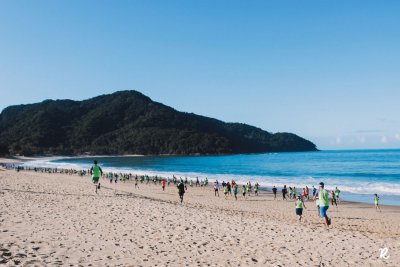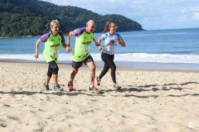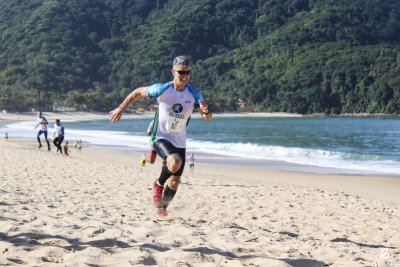 Corrida realizada na praia de Boiçucanga, São Sebastião. O circuito incluiu faixa de areia, diversos pontos de trilha e travessia de rio.