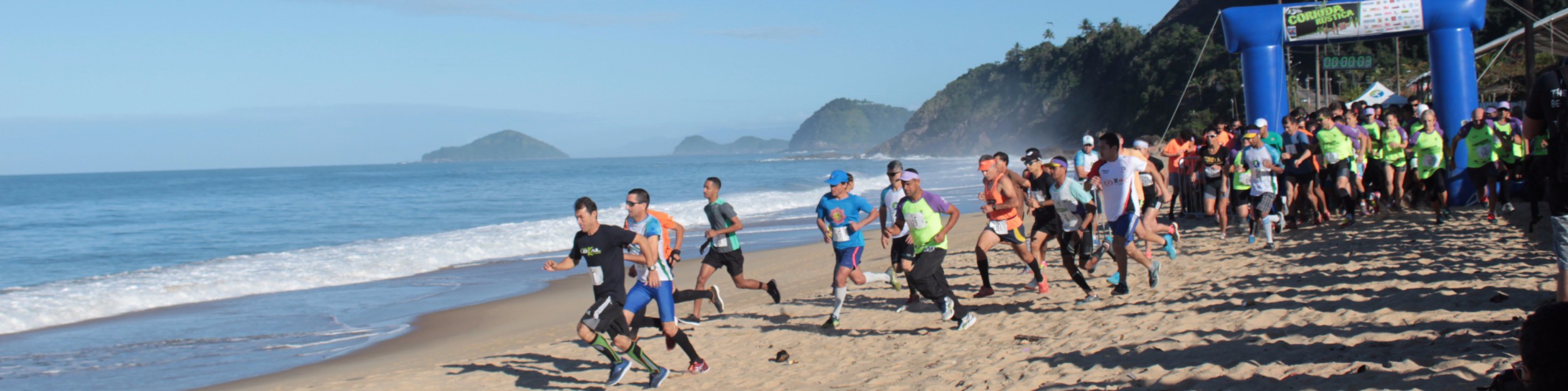 Corrida realizada na praia de Boiçucanga, São Sebastião. O circuito incluiu faixa de areia, diversos pontos de trilha e travessia de rio.
