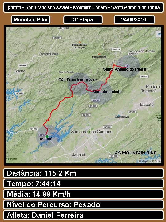 3ª Etapa - Igarata - São Francisco Xavier - Monteiro Lobato - Santo Antônio do Pinhal - 115km - 24.09.2016