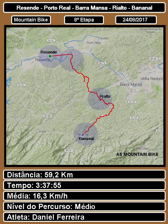 8ª Etapa - Resende - Porto Real - Barra Mansa - Rialto - Bananal - 59Km - 24.08.2017