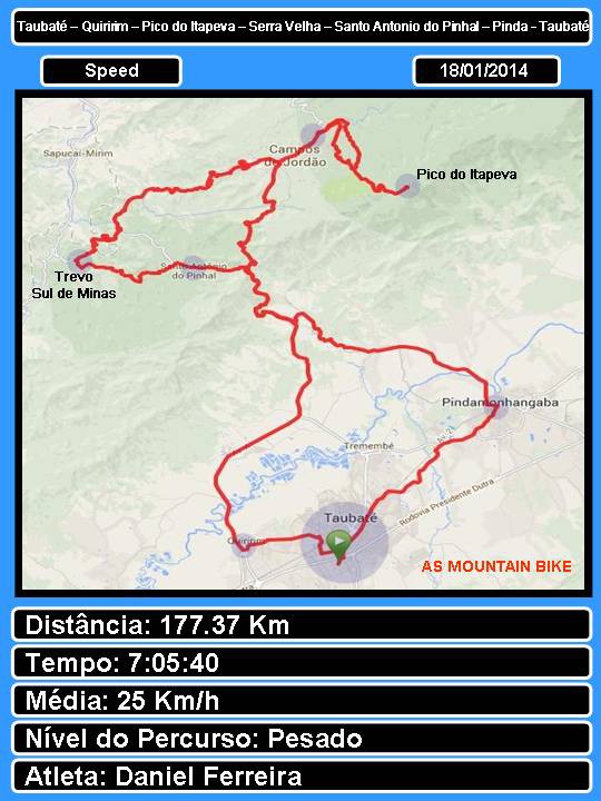 Taubaté - Quiririm - Campos do Jordão - Pico do Itapeva - Serra velha - Santo Antonio do Pinhal - Pinda - Taubaté - 177Km - 18.01.2014