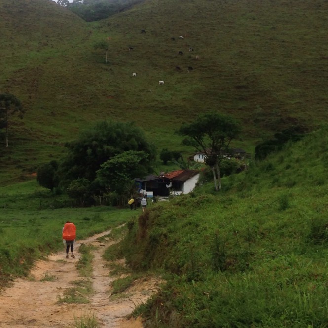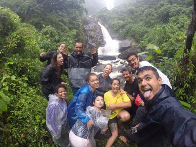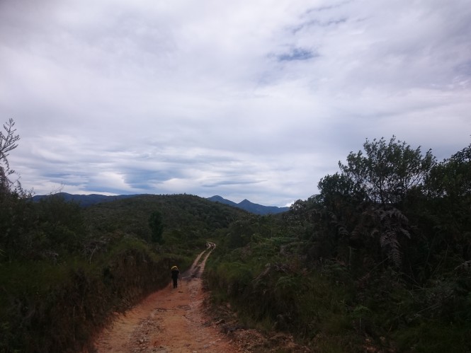 Dali em diante o sol raiou, apertamos o passo, entramos em mata mais fechada e esse dia foi o dia do festival de tombos de tal escorregadia que eram as partes de pedra, após umas 2h de caminhada ou menos já começa a descida da serra pelo antigo calçamento cheio de lodo e lama, foi cansativo mas no meio tinha uma queda de cachu então tá tudo certo. E quando menos esperamos, ual, chegou!!! Teve gente que passou da linha de chegada até de tão bom que era pra ser verdade.