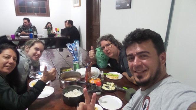 Terminado nosso roteiro de sábado, já no abrigo, preparamos nosso jantar com muita alegria, galeras de SP (nós), MG e RJ dividem histórias de montanha e os iniciantes se encantam com os feitos dos mais experientes e já anotam tudo para colocar em suas listinhas de "próximos picos a conquistar", rsrsrs.