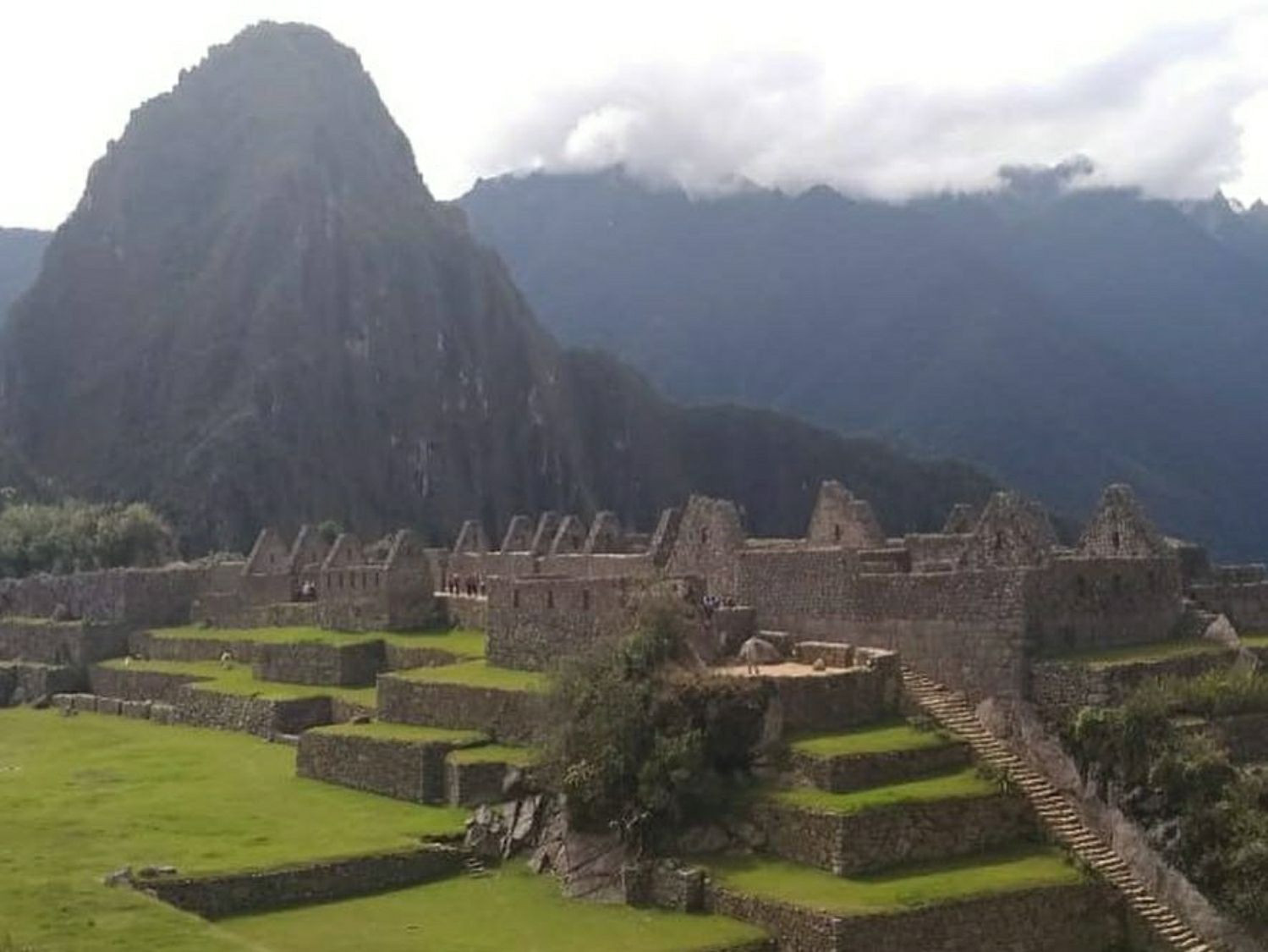 Fomos de ônibus até Aguas Calientes onde seguimos a pé pela trilha, por duas horas, até chegarmos em Machu Picchu.