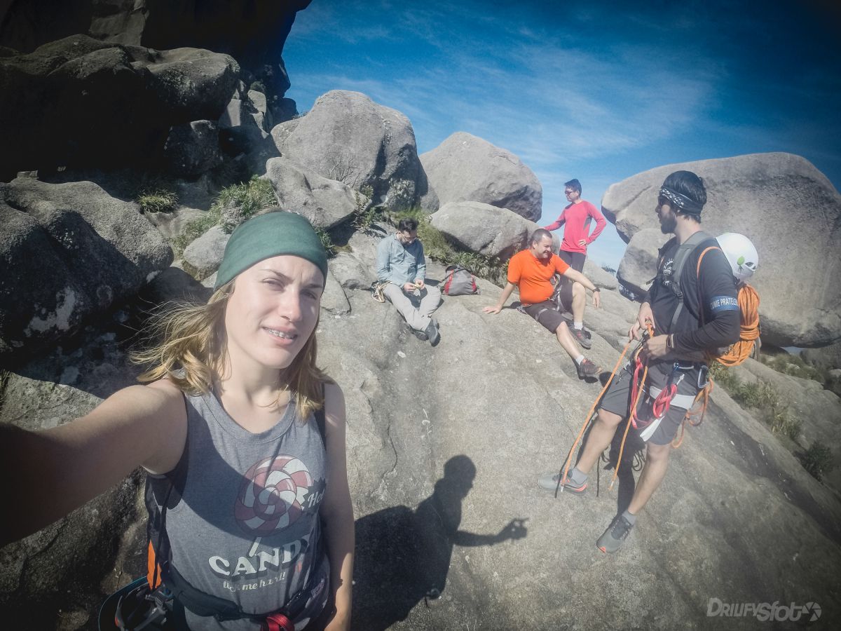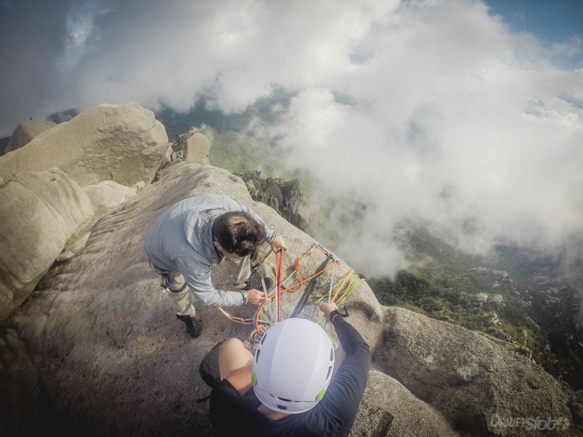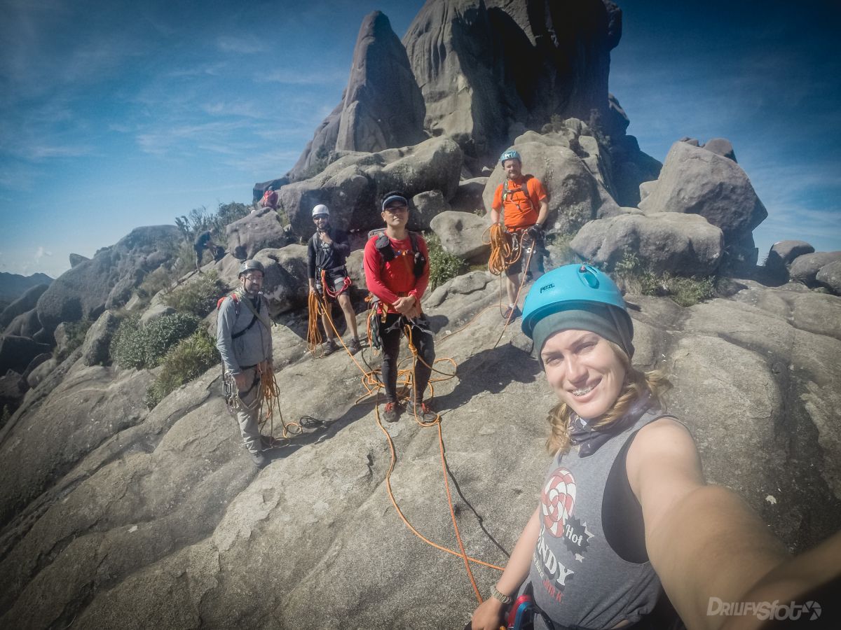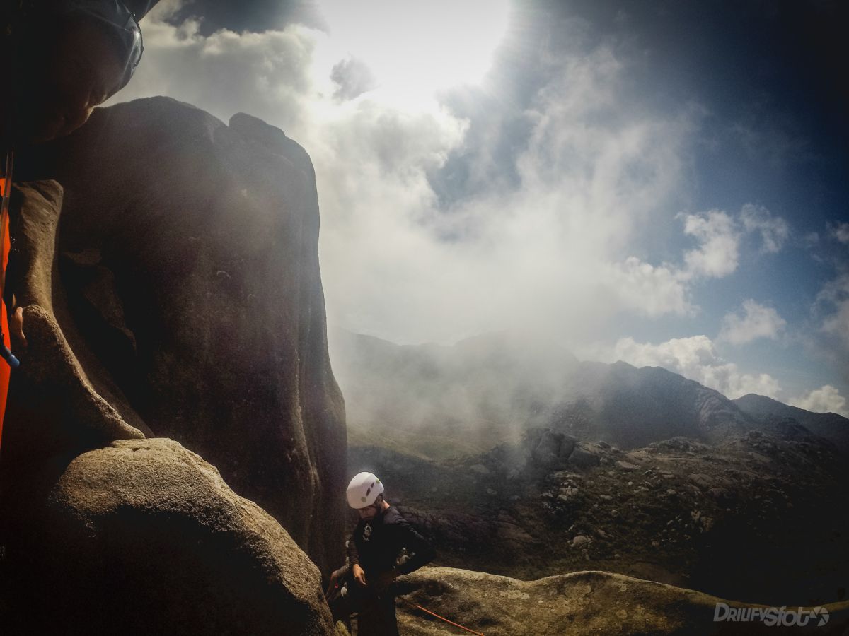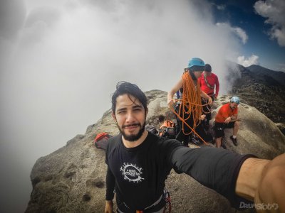 Experiencia de escalada com amigos subindo o Pico das Prateleiras via face norte.