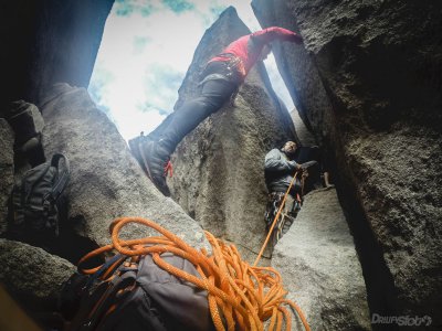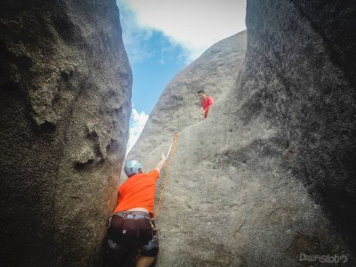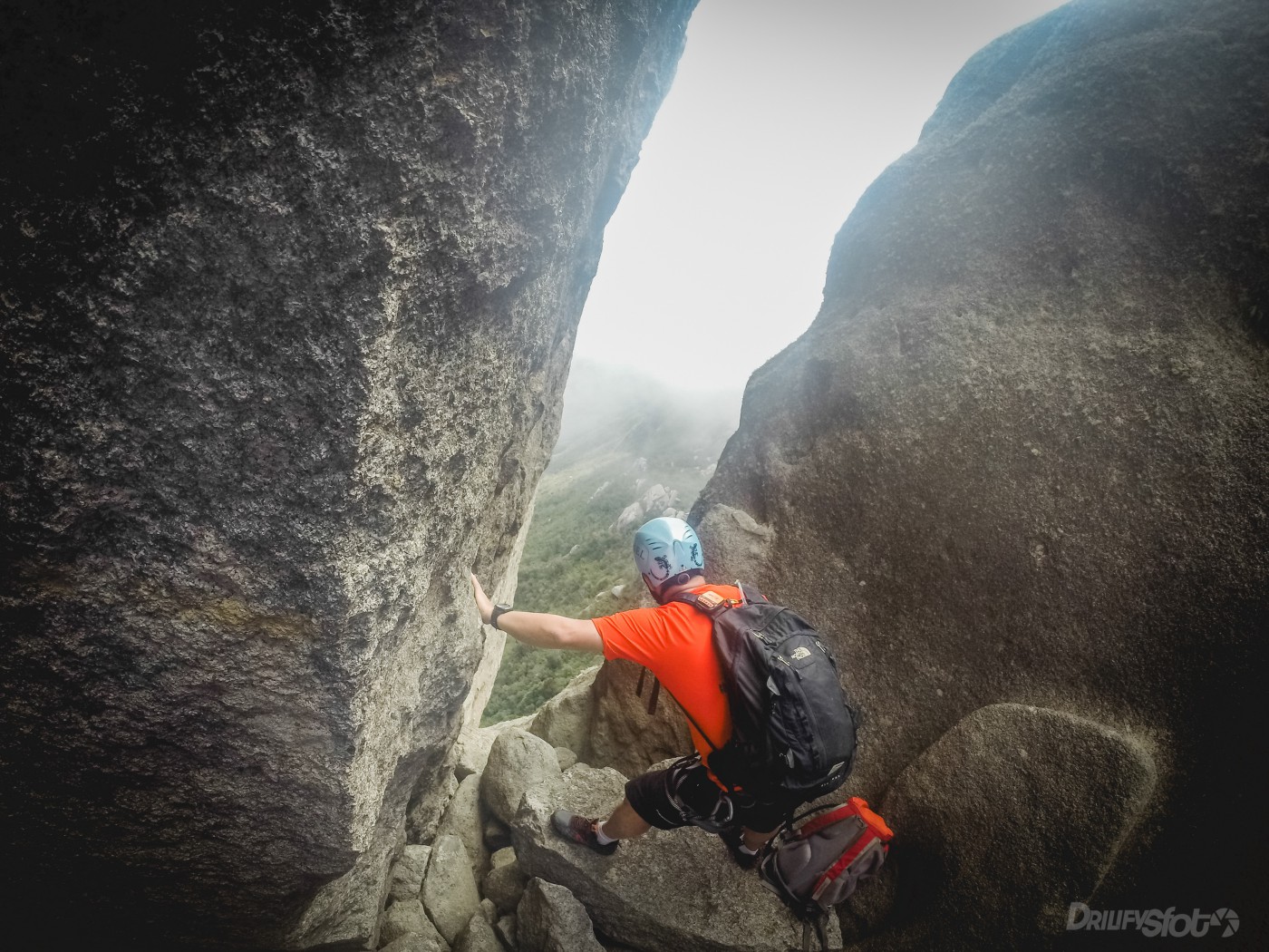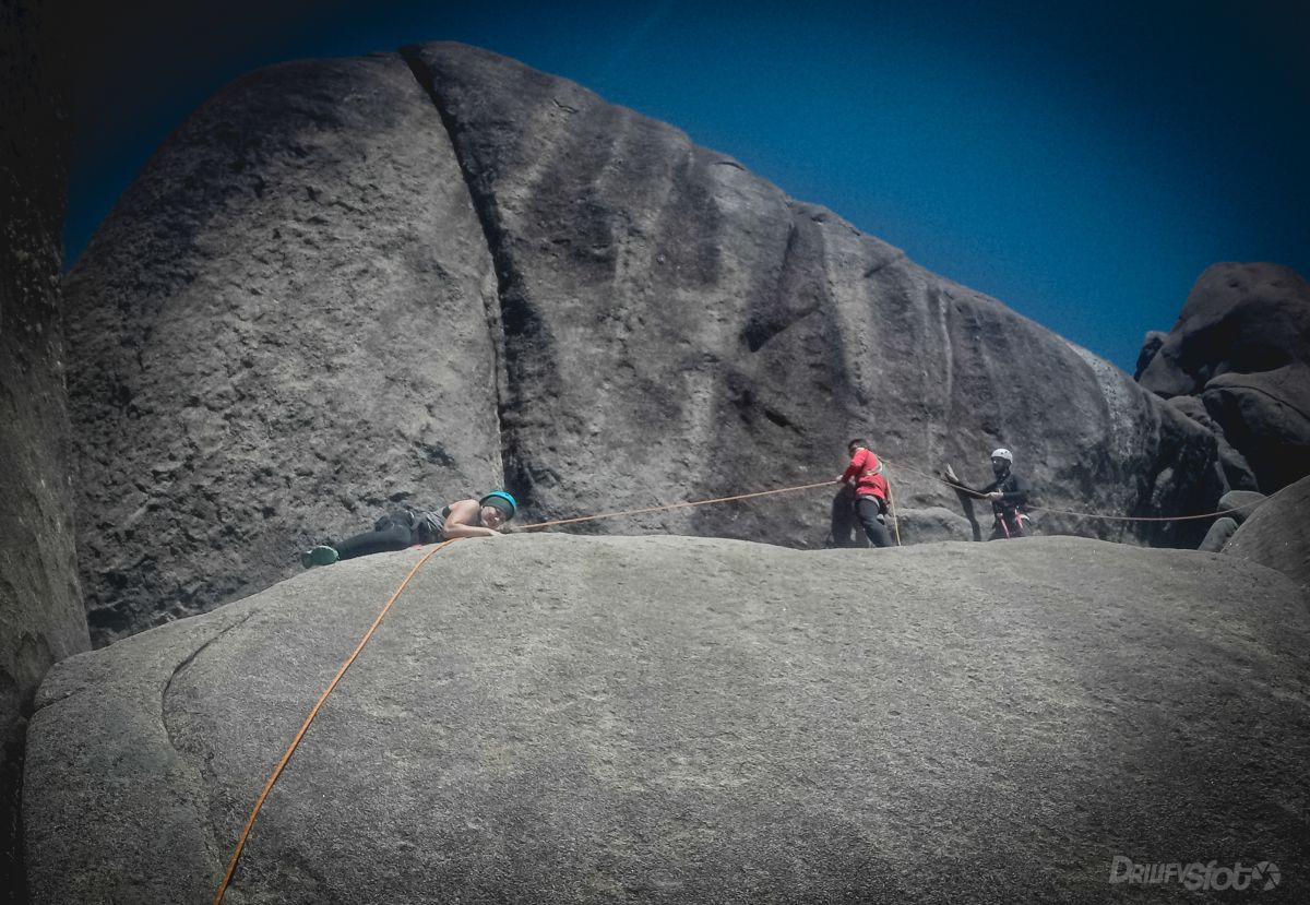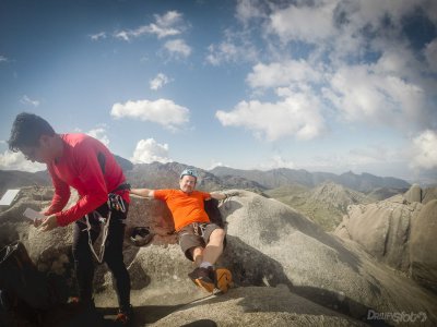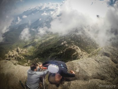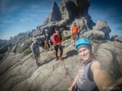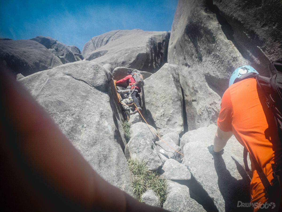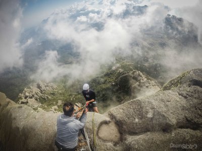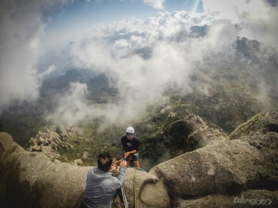 Experiencia de escalada com amigos subindo o Pico das Prateleiras via face norte.