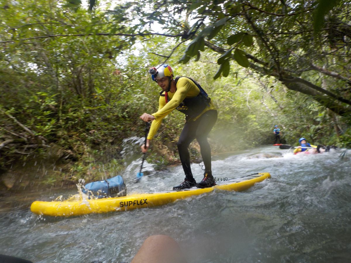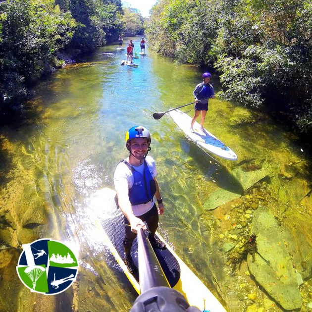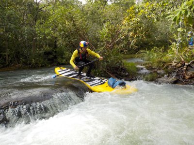 Descida de 6km entre corredeiras nível 1 e 2 com pranchas de Stand Up Paddle adaptadas, alem de todo equipamento de segurança!!!