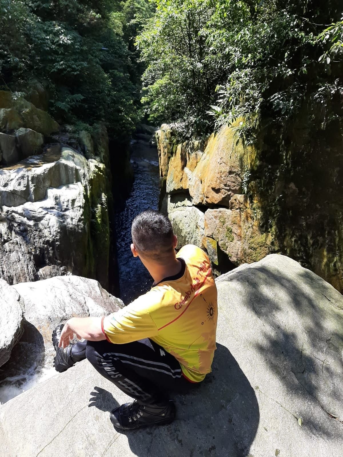 Depois de passar o portal seguimos pedras a baixo e chegamos a um dos poços aonde dava para nadar e ali descansamos e comemos algo , nadamos, pulamos das pedras e se divertimos, o pessoal em si pareciam crianças vendo um brinquedo pela primeira vez . Mas tínhamos de continuar afinal a previsão no final do dia seria de chuva então seguimos e depois de 1 hora mais ou menos chegamos a famosa garganta do Diabo, um cannyon estreito e fundo aonde o José e Jacson pularam , eu não tive coragem kkkkkk.