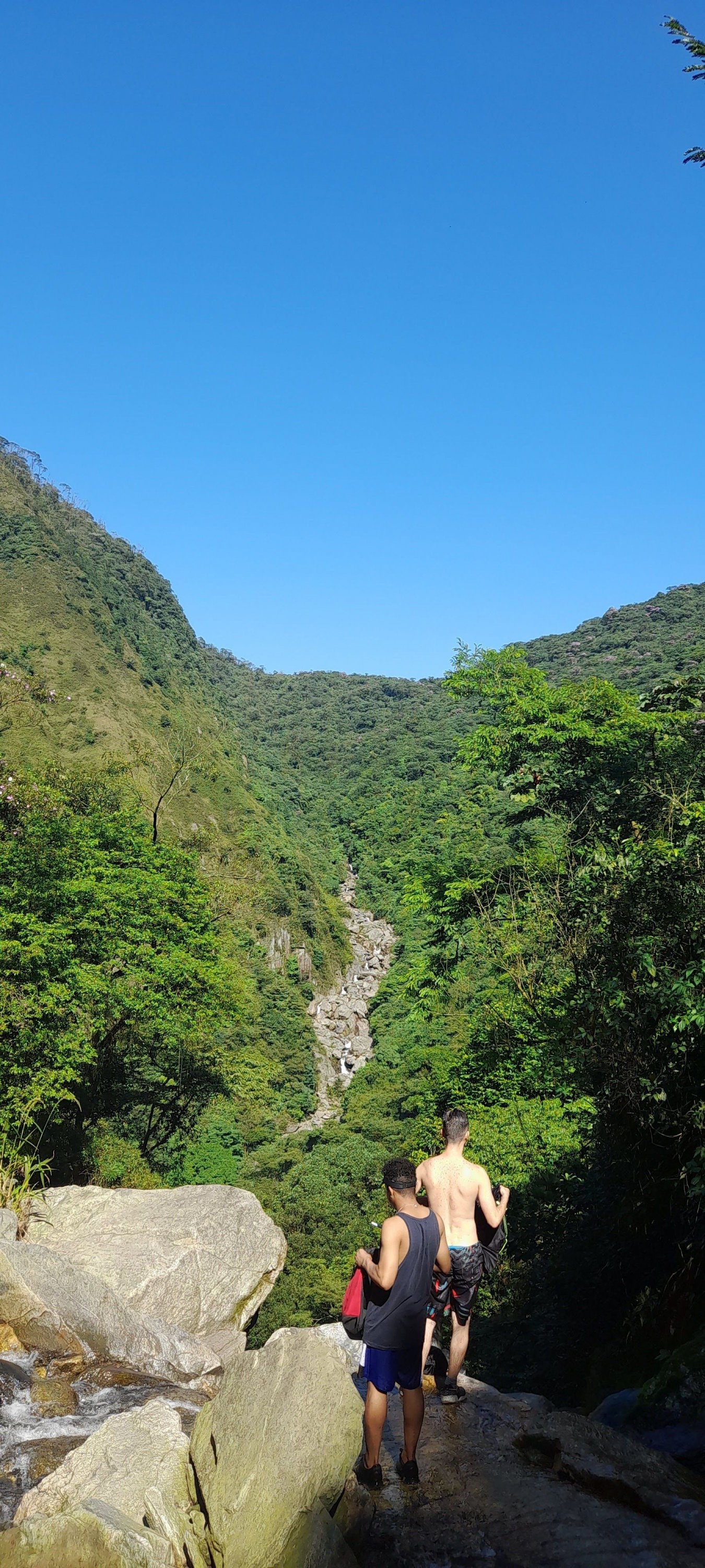 E já chegando no final ,observando a cachoeira dos ventos infelizmente sofri um acidente onde "fissurei" 2 costelas, segui o caminho com muita dor e no meio do caminho a chuva nos pegou forte intensa mas já tínhamos saído da parte perigosa , chegando no final da trilha do sal, meu celular morreu e já sabem né tive de arrumar carooooooo.