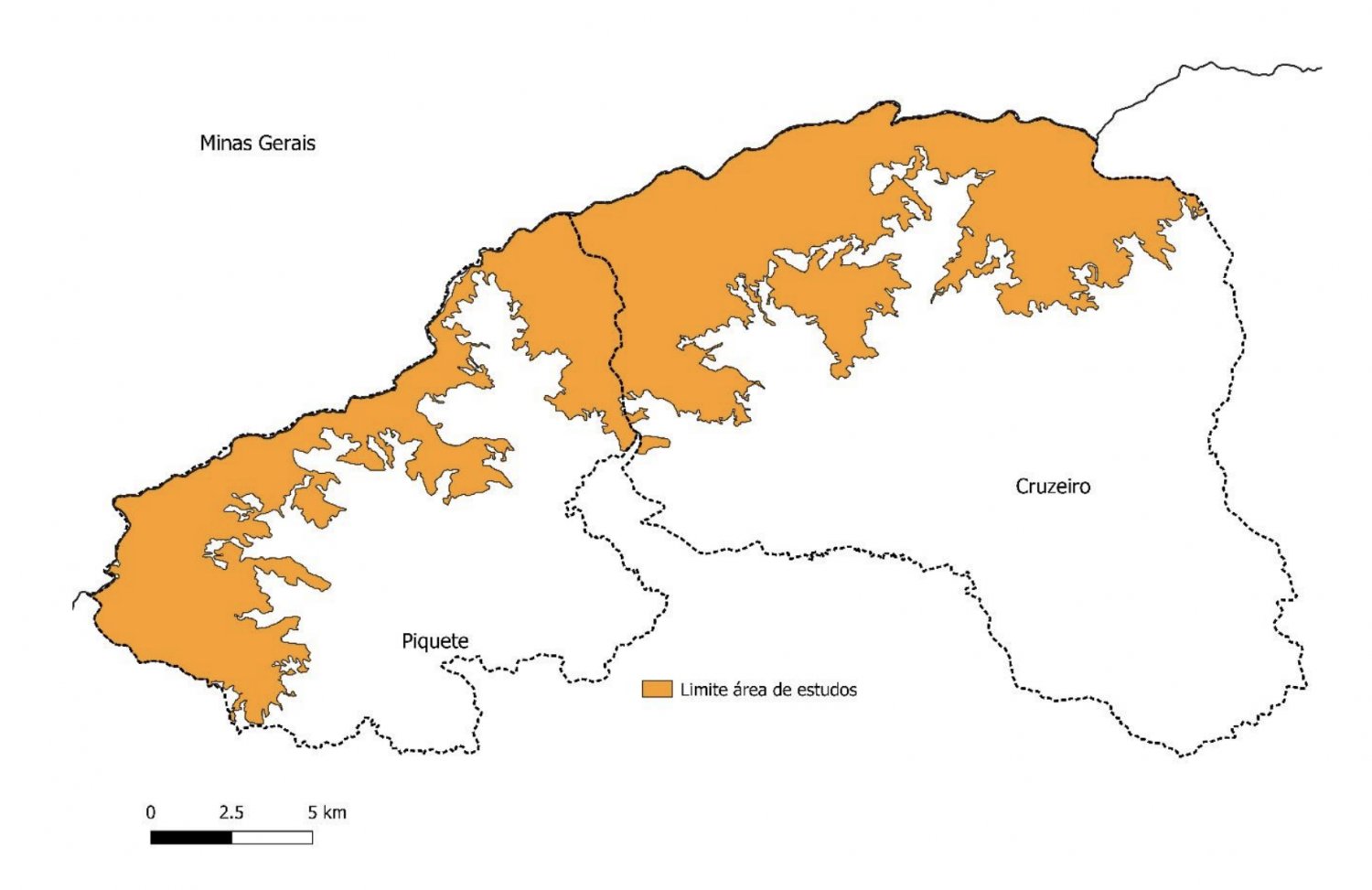 Mapa da área de estudos da proposta de Unidade de Conservação de Proteção Integral nos municípios de Piquete e Cruzeiro. (Fonte: Diário Oficial).