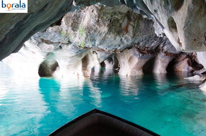 Com barcos pequenos é possível entrar dentro dessas ''cavernas'' de mármore, são centenas delas. Para chegar lá são necessários de 30 à 40 minutos de barco. É liberado mergulhar no lago, para quem quiser encarar a aventura, a temperatura daquela água azul beira os 6 graus. É lindo, mas é gelado...