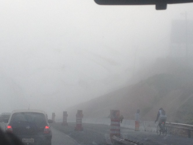 Estrada com baixa visibilidade devido à neblina que em algumas horas se dissipou.