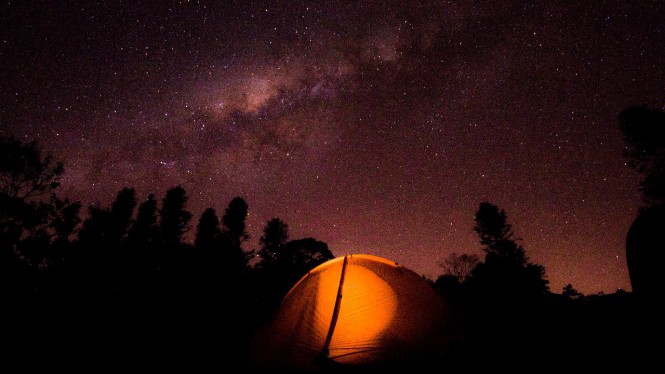 Eu não tive a mesma paciência que João e fui dormir mais cedo. Ele não conseguiu imagens da chuva de meteoros mas captou belos registros do acampamento à noite.