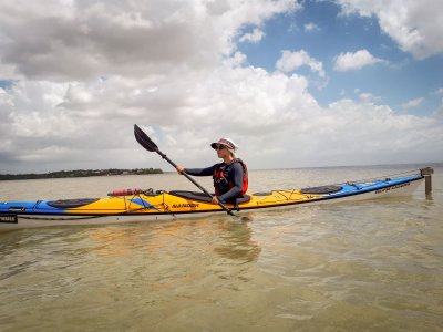 uma remadinha é massa! tb não sei nadar, mas de colete não existe perigo. É bom saber como sair do caiaque, desvirar e embarcar de volta no bicho se acontecer de capotar. ;)