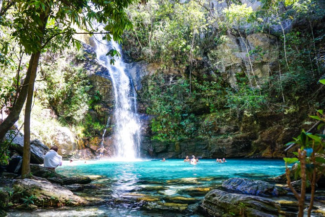 Vá cedo. Essa é a dica mais importante para conhecer esse lugar realmente mágico. Estávamos na semana do Festival de Cultura, o que significa que tudo estava muito lotado. Não seria diferente nesse que é o cartão postal de águas cristalinas da Chapada dos Veadeiros.