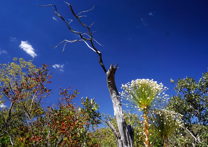 Saímos cedo do camping em direção ao Parque Nacional da Chapada dos Veadeiros. Lá, os monitores te apresentam as possibilidades de trekking, que são, principalmente, três: a travessia das Sete Quedas (23km, em 2 dias), a trilha que leva até o Salto do Rio Preto (5km ida) e a que leva até a região dos cânions (5km ida). Nossa intenção era reservar apenas um dia de visitação ao parque, então optamos por fazer os dois percursos menores de 5 quilômetros – uma vez que considerando a ida e a volta de ambos já andaríamos cerca de 20km no total.